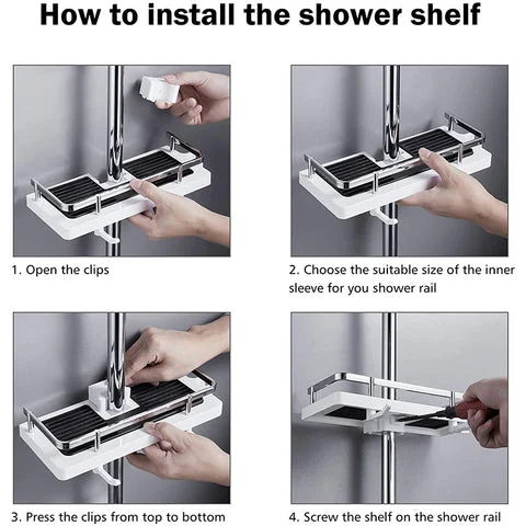 ADJUSTABLE HEIGHT - The AquaMax™ Shower Storage Rack can hold shower, gel, shampoo, facial cleanser, shower foam and other items. The height of the tray is adjustable. You can adjust the height of the Bathroom Shelf according to your habits.