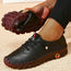 The shoe has an orthopedic sole that supports the feet, while the upper material is breathable.